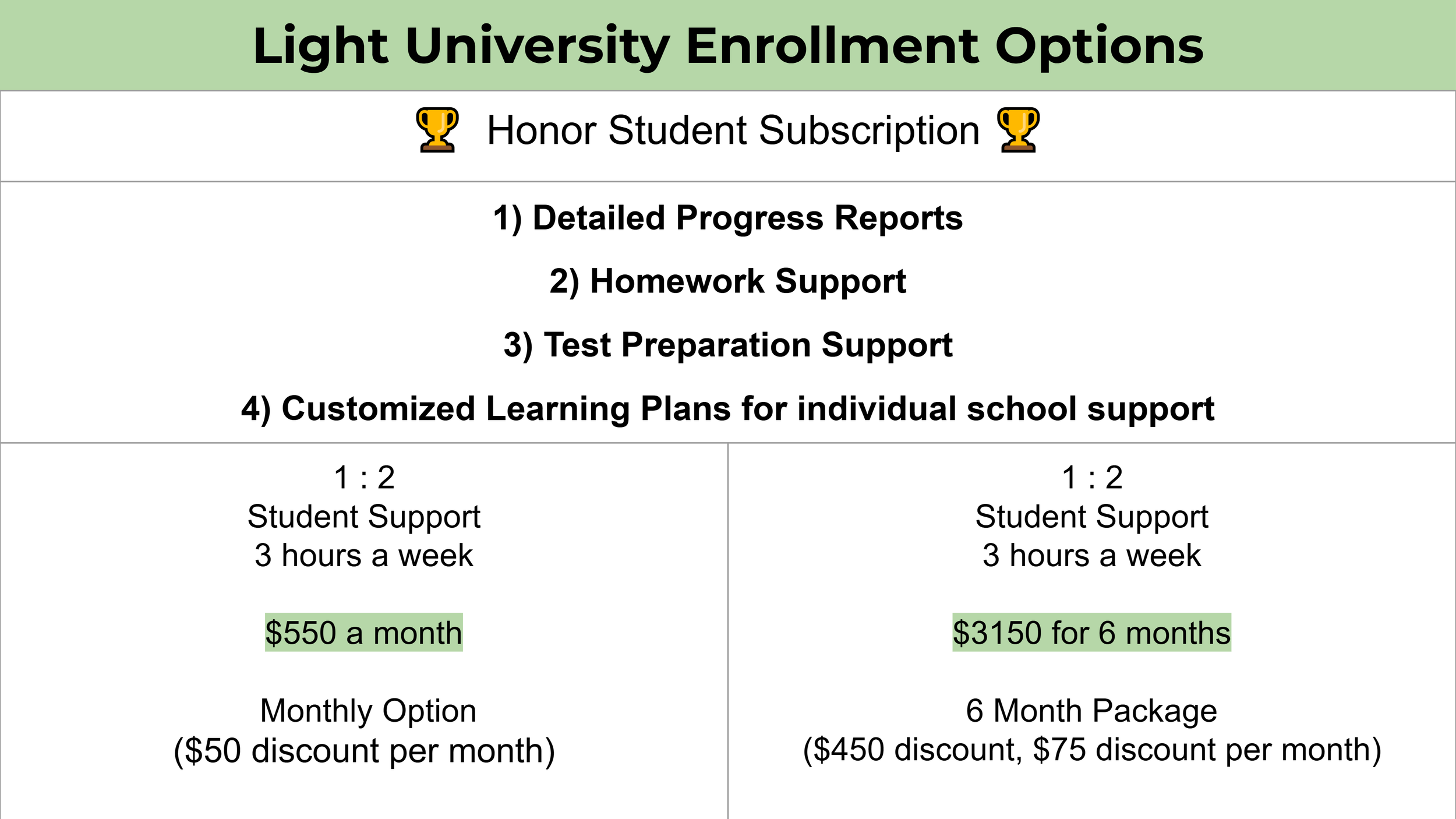 Honor Student Subscription Subscribe Now Honor Student 3 Hours a week - 6 Month Package Subscribe Now
